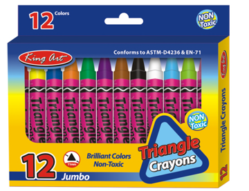 12支大三角蜡笔,PVC底托包装(尺寸:1.1 x 9.8 cms)
