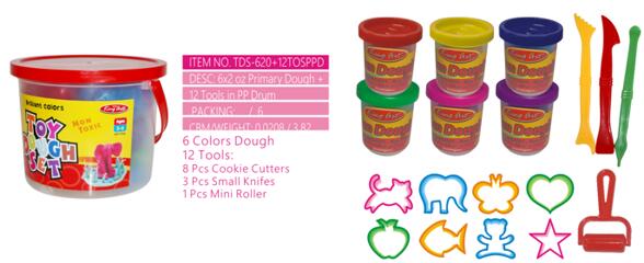 6 X 2安彩泥 + 12个彩泥工具,PP桶装